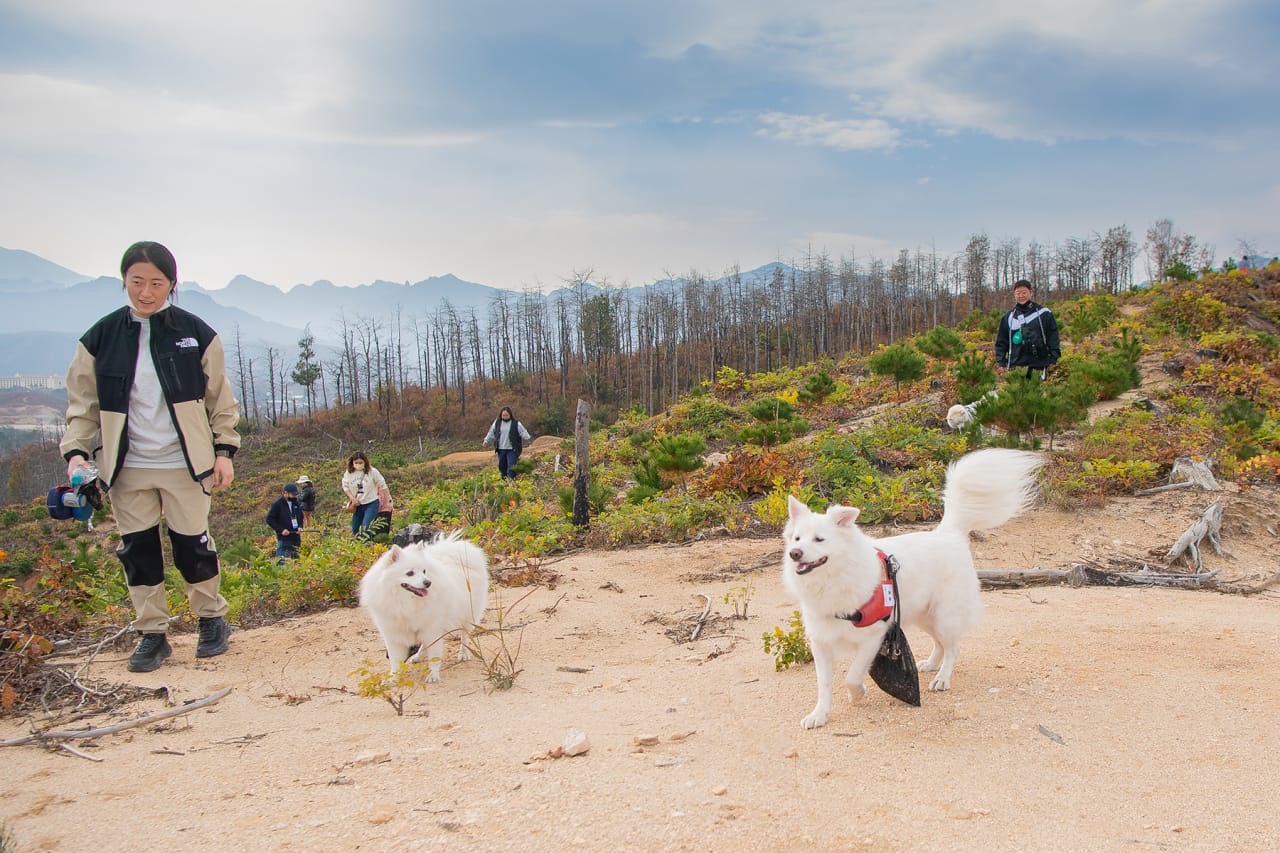 자연재해로 불타버린 숲을 되살리기 위해 산을 타는 강아지들도 있습니다. 바로 녹지재생견, ‘산타독’입니다. 이들은 구멍이 뚫린 가방에 씨앗을 담아 폐허가 된 산불 피해 지역을 신나게 뛰어다니고, 사람이 닿기 힘든 곳까지 씨앗을 뿌리며 숲의 재생을 돕습니다. 지난 2022년 강원도 고성 산불 현장에도 산타독들이 출동하여, 파괴된 자연을 우리에게 돌려주는 데 기여한 바 있습니다.
