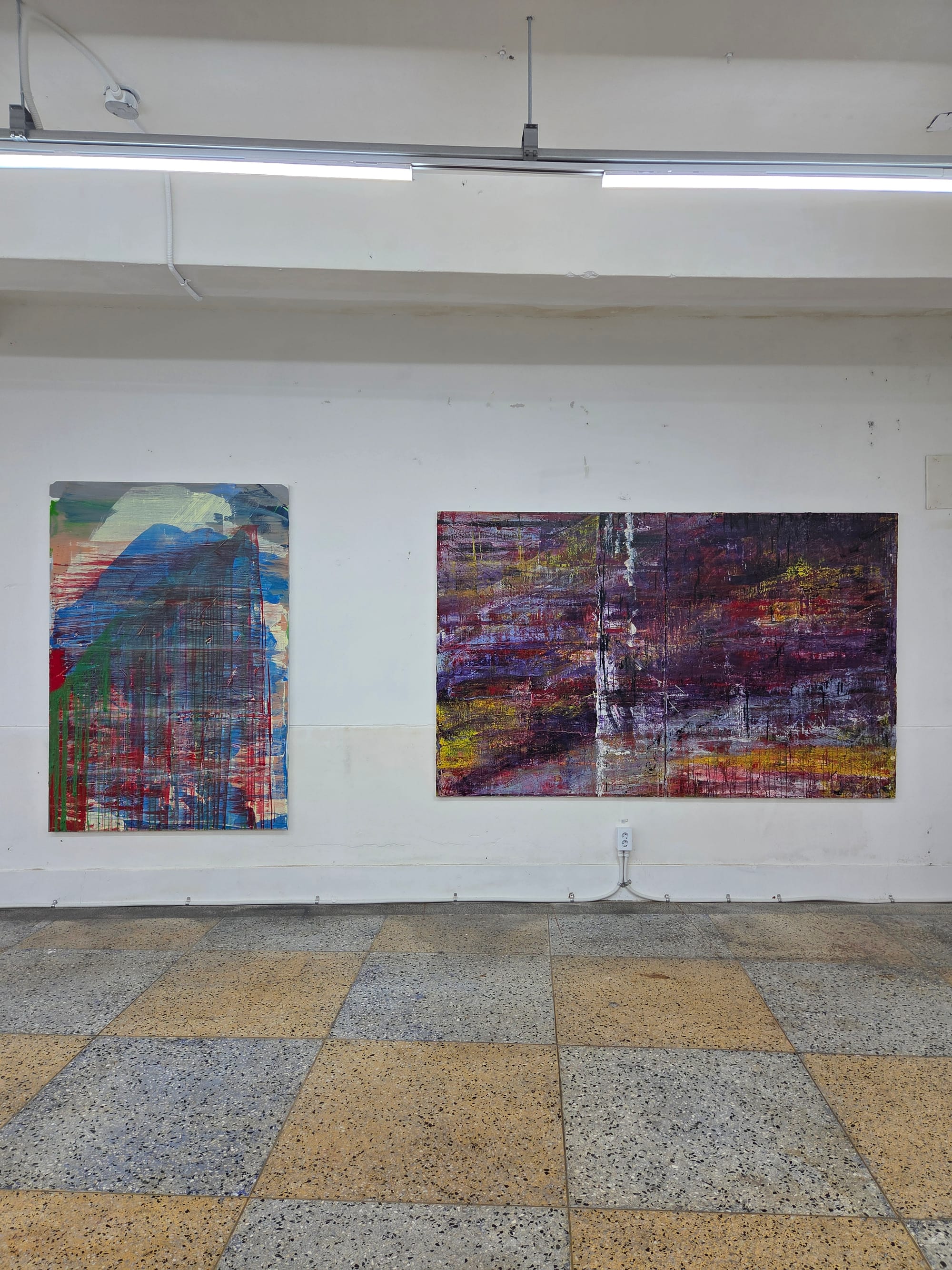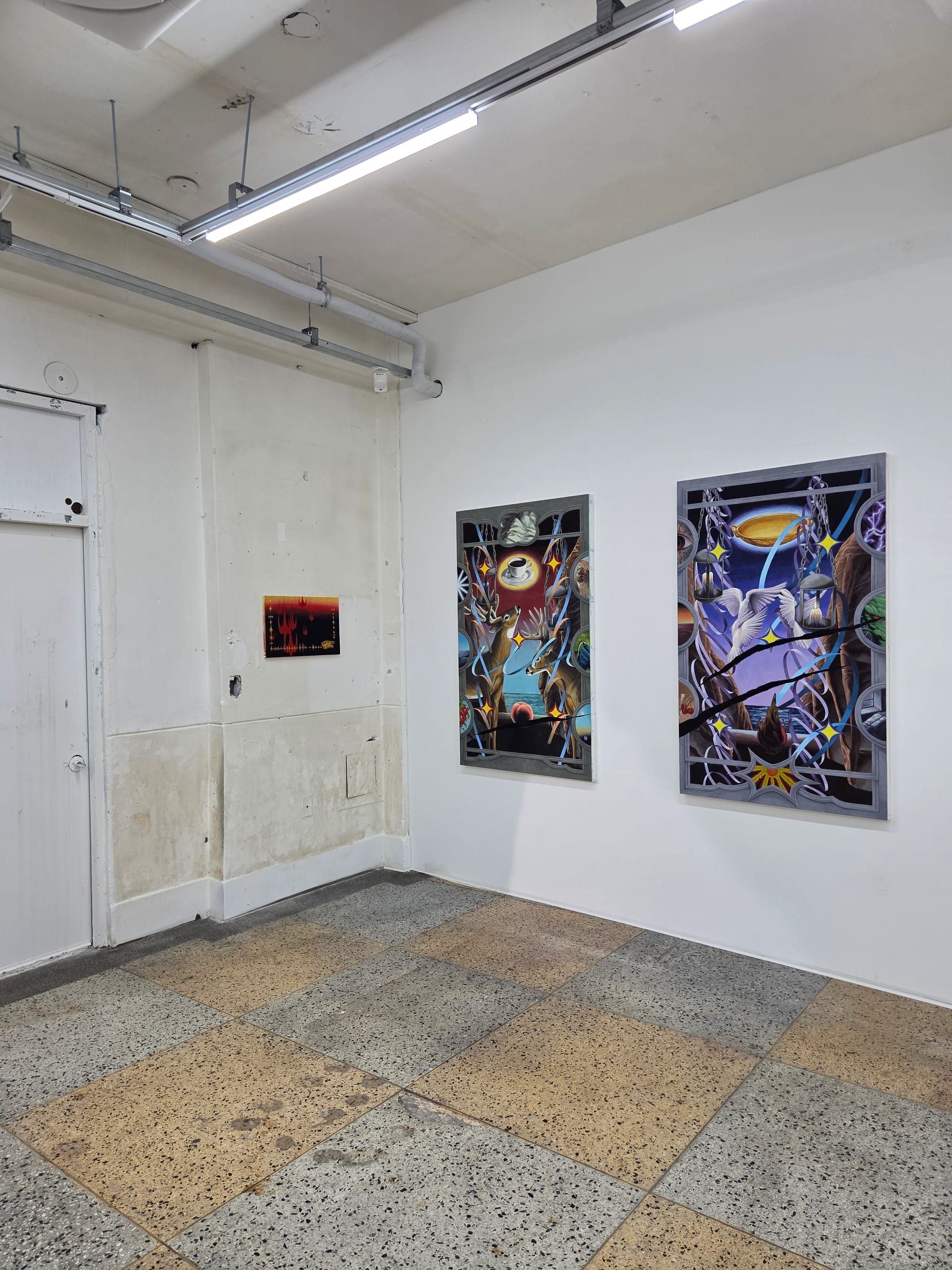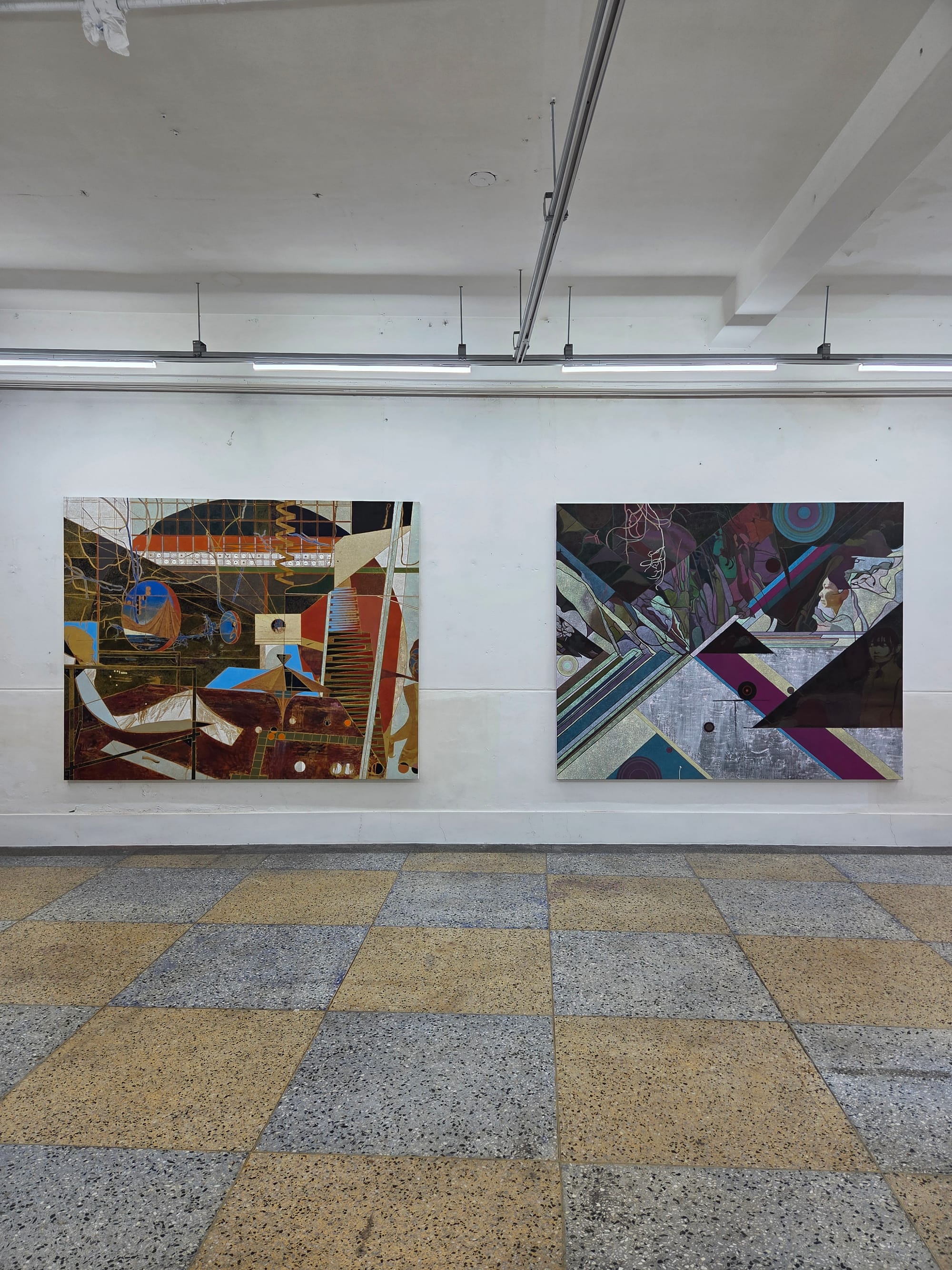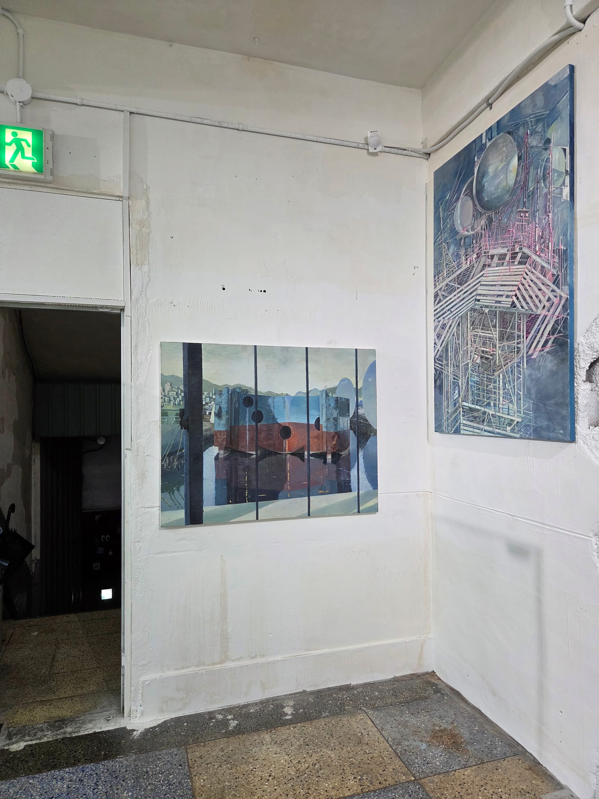 김민조, 모래성, 2025, 캔버스에 유채, 색연필, 97 x 145cm / 우는 배, 2021, 캔버스에 유채, 91 x 117cm / 곡예 비행, 20223, 캔버스에 유채, 130 x 162cm 이미지_양승규