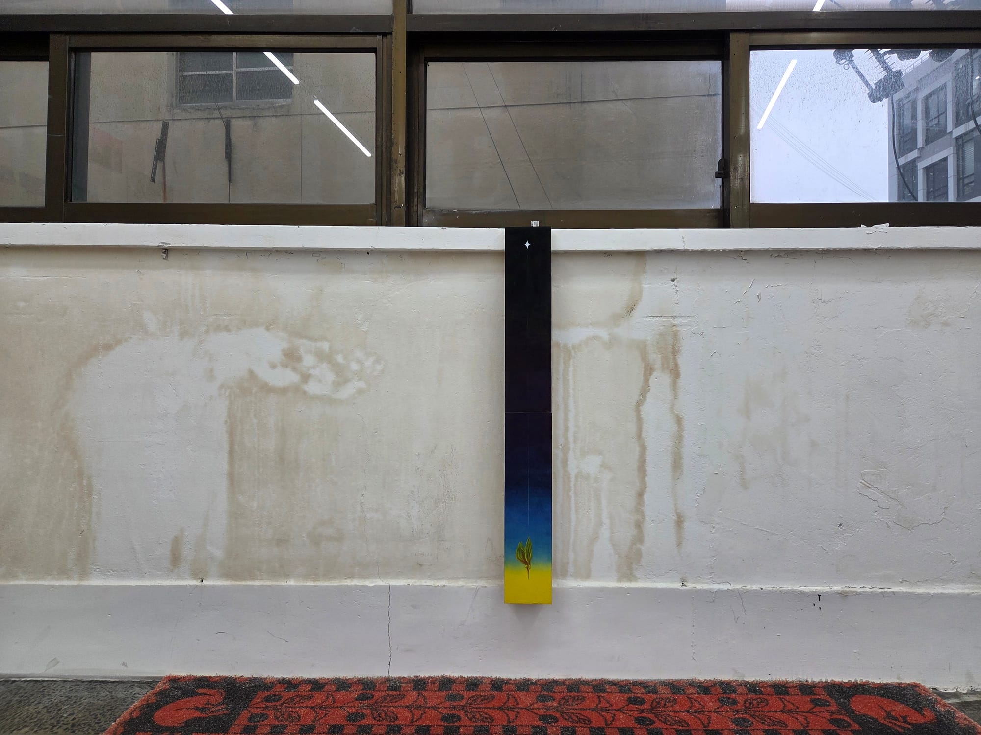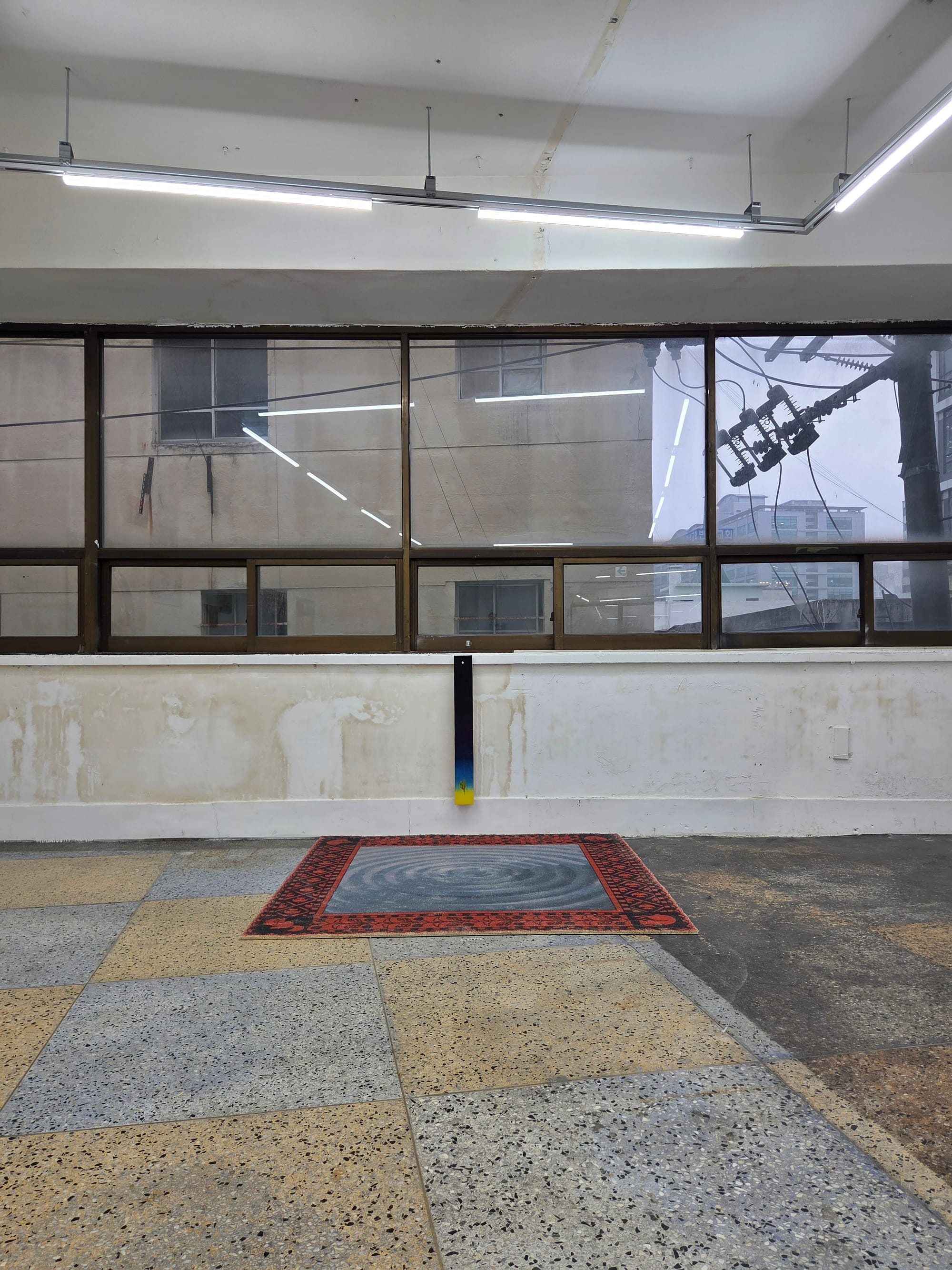 문주혜, Angelica, 2026, 장지에 채색, 40 x 10 x 2cm / 호수, 2026, 카펫, 160 x 160cm 이미지_양승규
