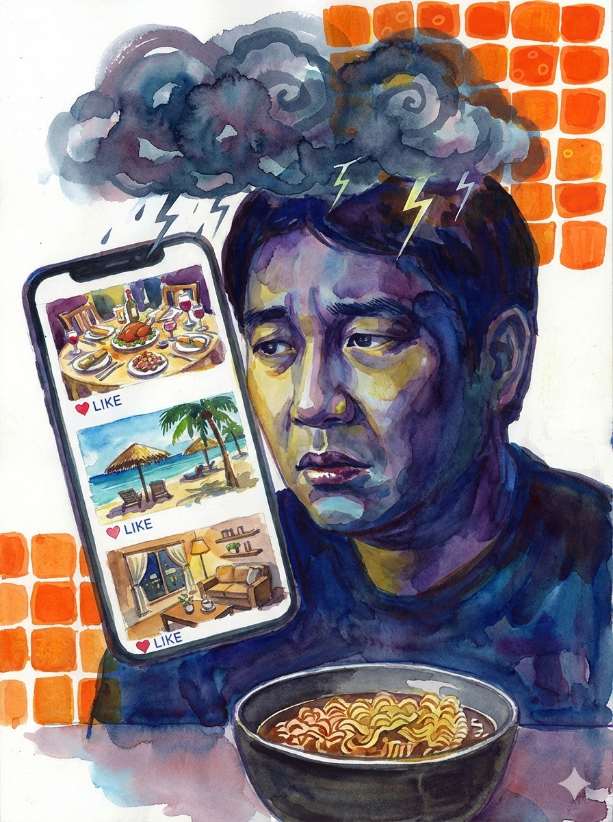 모르면 비교도 질투도 할 수 없다. 그런데 스마트폰과 지금의 SNS가 비교의 경계를 완전히 허물어버렸다. 남의 집의 화려한 저녁 식탁, 주말 브이로그, 여행기, 감성 홈 카페가 실시간으로 피드에 떠오른다. 멀쩡히 살아가다가도 한 집이 큰맘 먹고 다녀온 가족여행 사진에 마음속 폭풍을 맞이한다. 무지의 기쁨이 허락되지 않는 시대다.