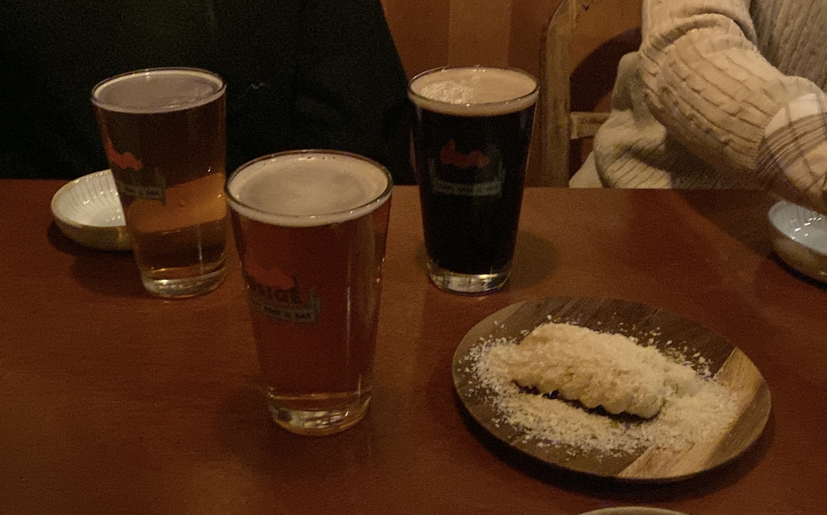 기본 안주로 나오는 바나나 튀김도 인상적이었는데요, 바나나에 빵가루를 입혀 튀긴 것으로, 마치 수제 바나나킥 같은 느낌이었습니다. 파스타, 스테이크 등 든든한 메뉴도 함께 갖추고 있어 안주 걱정 없이 오래 머물기에도 좋습니다. 필자는 아직 마시지 못한 오시게 에일과 포터를 핑계로, 봄이 오면 온천천 산책 후 다시 들려보려 합니다.