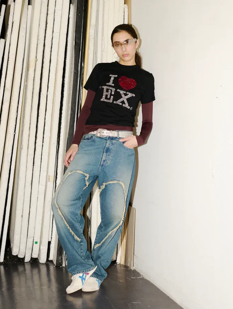 까르네 볼렌테가 성을 표현하는 방식은 솔직합니다. 메시지는 대담하지만, 삽화와 자수를 적극적으로 활용해 전반적인 분위기를 유쾌하게 풀어냅니다. ‘I LOVE NY’의 디자인을 비튼 ‘Ex Appeal’, 성과 공동체를 연결한 ‘Cum-munity Values’ 같은 언어유희는 브랜드가 성을 다루는 태도를 자연스럽게 보여줍니다.