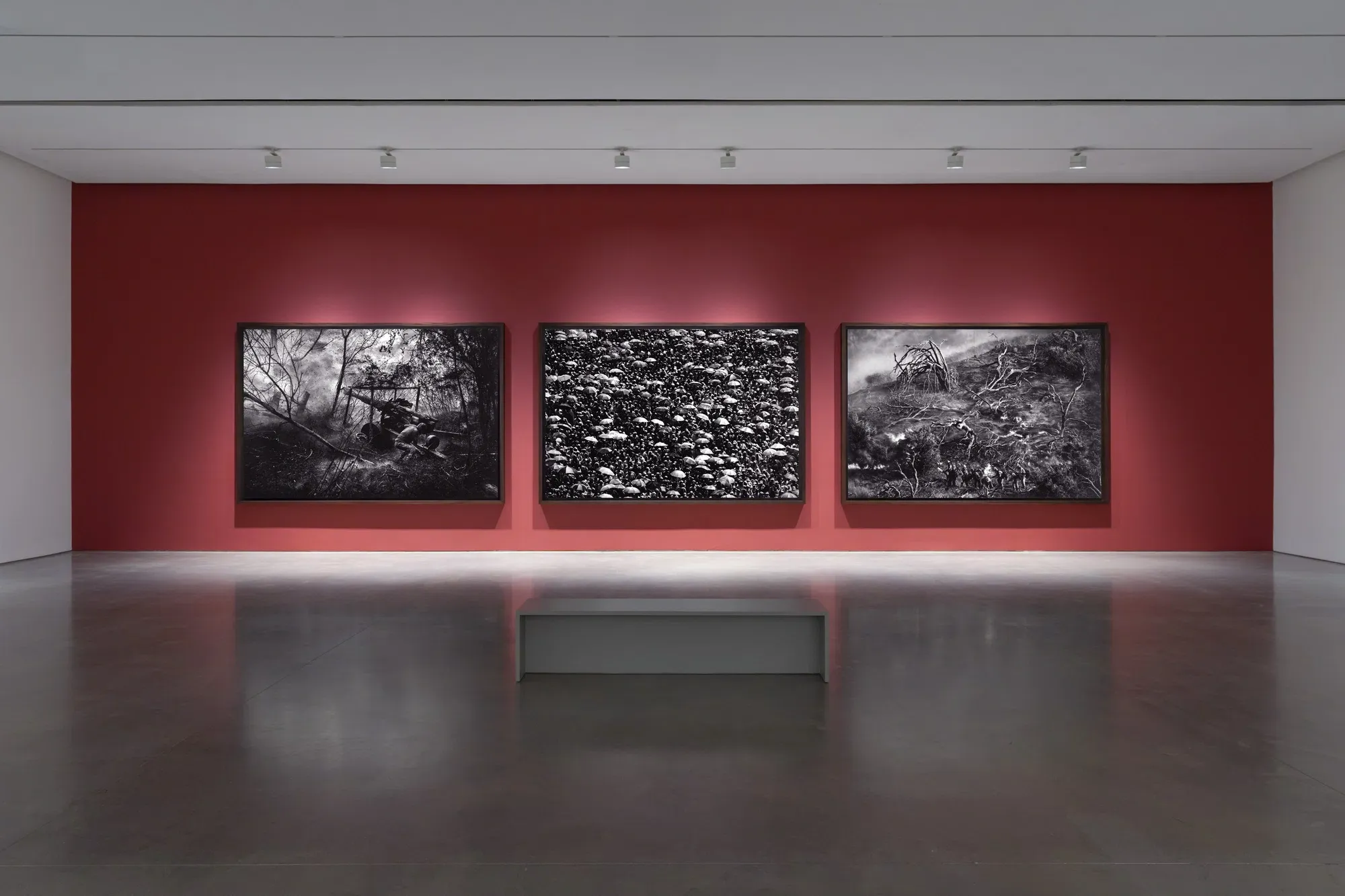 가장 먼저 향한 페이스 갤러리는 마침 65주년을 축하하고 있었습니다. 건물 전체가 갤러리인 그곳에서는 로버트 롱고(Robert Longo)의 전시 « The Weight of Hope »가 펼쳐지고 있었습니다. 뉴욕에서 태어난 롱고는 목탄 드로잉, 조각, 영상 등 다양한 매체로 사회, 정치적 사건을 주제를 표현합니다. 특히 눈에 띈 것은 시위와 전쟁, 폭력의 현장을 다룬 작품들이었습니다. 흑인 인권 운동인 BLM(Black Lives Matter)부터 북한 군대의 모습까지 다양한 사회 속 급박한 현장이 흑백 작품 속에 남아있었습니다.
