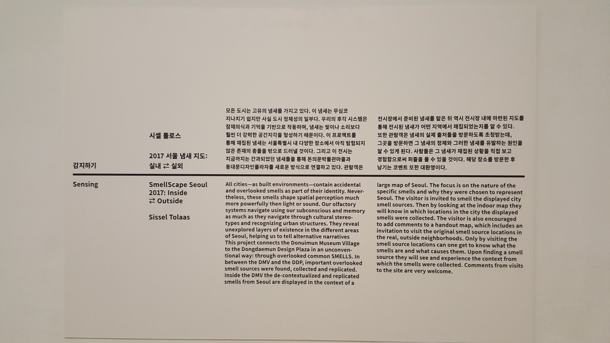 과거 헤이안 시대의 귀족들은 향기를 맡는 것이 아니라 ‘듣는다(聞香)’고 표현했다. 시셀 톨라스(Sissel Tolaas)의 ‘냄새 지도’는 이러한 감각의 본질을 현대적으로 복원한다. 그녀는 도시의 세밀한 냄새를 채집해 지도를 만들었다. 시각적 지도가 감추고 있는 빈민가의 땀 냄새, 강변의 비린내를 통해 우리는 도시의 ‘진짜 얼굴’을 마주한다. 시각은 사물의 표면을 훑지만, 후각은 대상의 가장 내밀한 본질을 파고든다.