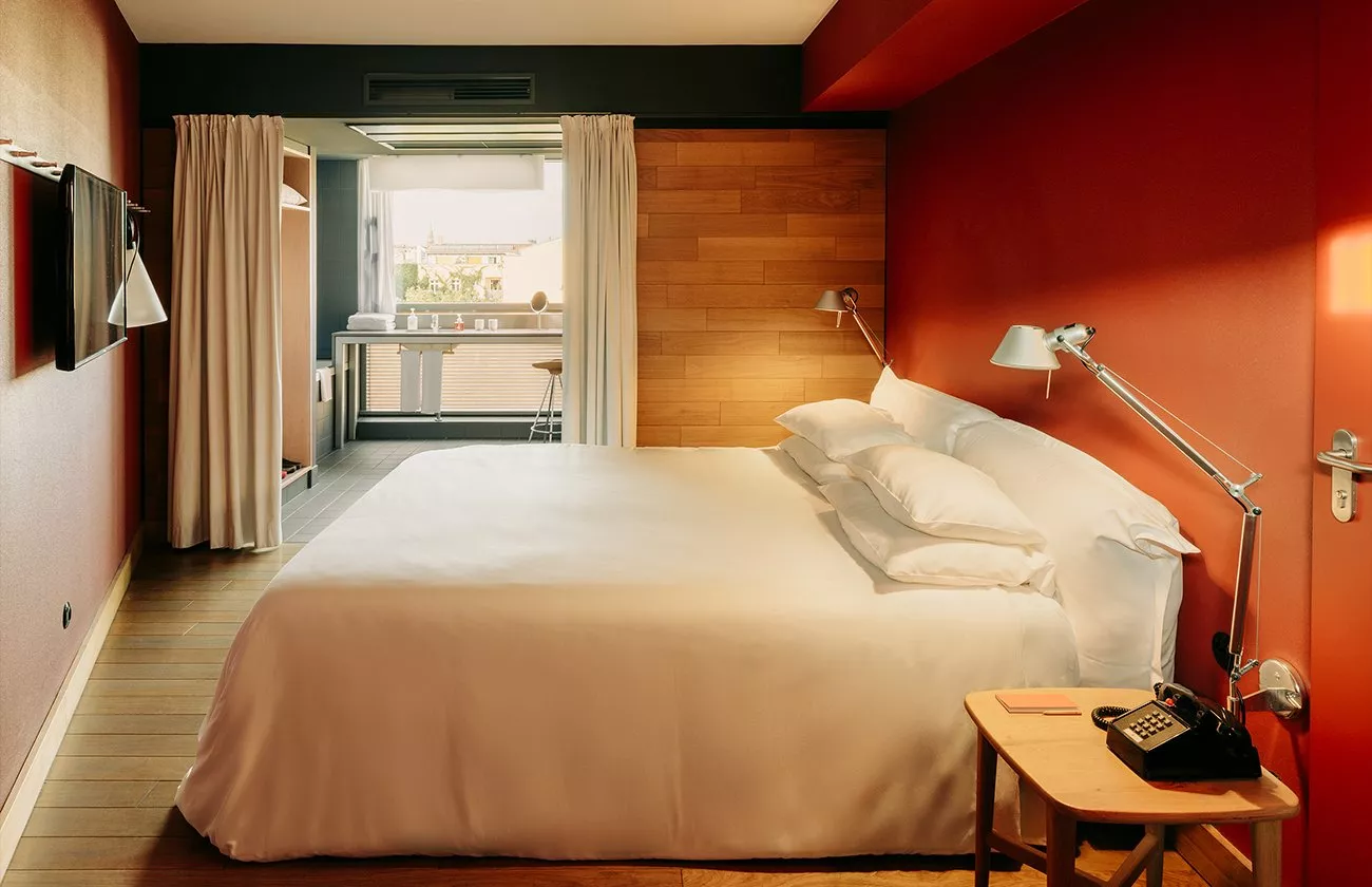 카사 캠퍼의 가장 큰 특징은 ‘내 집 같은 편안함’을 제공하는 디자인과 서비스입니다. 객실은 침실과 욕실을 분리해 넓고 안락한 느낌을 주며, 특히 큰 창을 통해 들어오는 자연광은 투숙객들에게 아늑함을 선사합니다. 앞서 소개한 두 곳의 호텔보다 화려함이나 힙한 분위기는 덜하지만, 그 대신 편안하고 편리한 감성을 강조합니다. 컬러와 소재 또한 캠퍼 신발을 연상시키는 심플하면서 세련된 붉은색 톤을 중심으로 구성되었고, 천연 소재가 곳곳에 사용되었습니다. 이 호텔의 라운지 이름은 ‘Tentempié’로, 스페인어로 휴식 또는 가벼운 간식을 의미합니다. 이름처럼 라운지는 24시간 무료로 운영되며, 투숙객들은 언제든 편하게 머물며 베를린 시내의 전망을 감상할 수 있습니다. 웰빙 시설도 잘 갖추어져 있어 투숙객은 핀란드식 사우나를 무료로 이용할 수 있고, 헬스장도 자유롭게 사용할 수 있습니다.