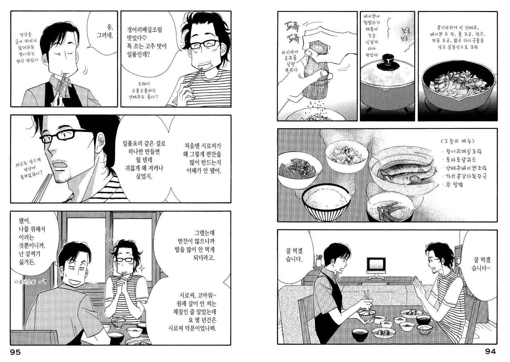 특히 이 만화는 일식 레시피만을 위해 참고할 수 있을 정도로 요리 과정을 자세히 묘사합니다. 정성스럽게 재료를 손질하고, 시간을 촘촘히 계산해 맛 좋고 보기 좋은 요리를 만드는 시로의 모습은 단순한 식사가 아닌 매일 반복해 쌓아온 애정의 방식으로 느껴집니다. 이 작품 역시 드라마와 영화로 제작되었습니다.