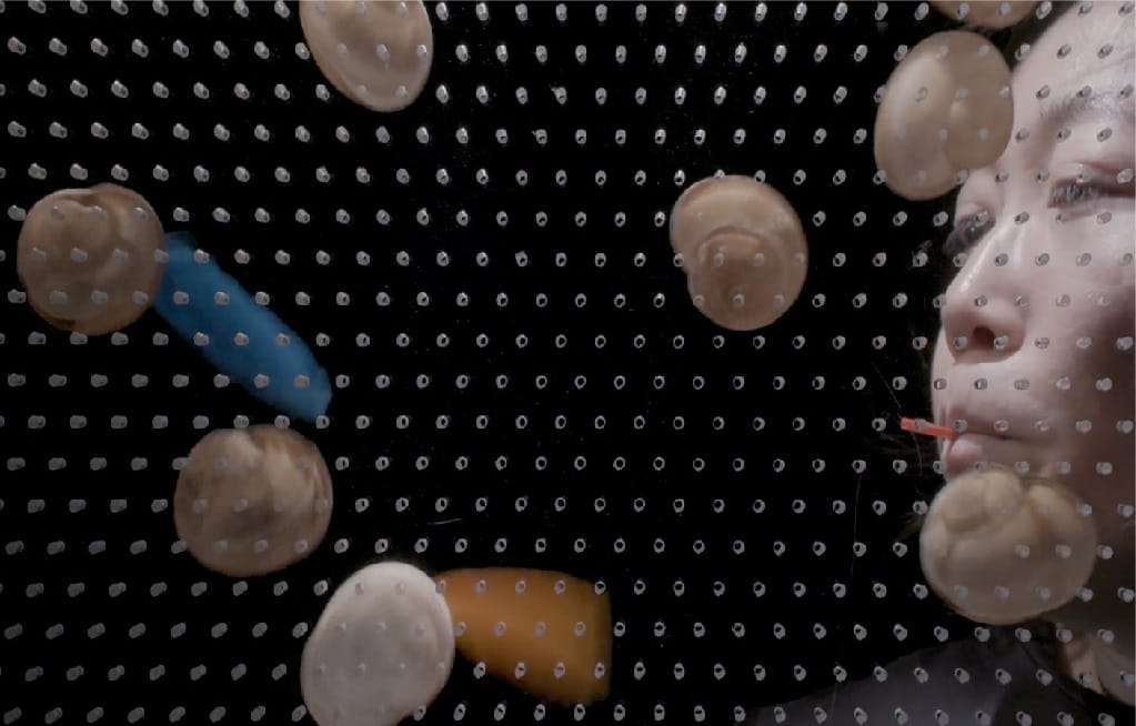59회 베니스 비엔날레를 위해 제작된 사사모토의 설치작품 <Sink or Float>는 우리가 놓인 현실적·외부적 조건을 시각화합니다. 병뚜껑, 달팽이 껍데기, 커피 리드, 돋보기 같은 잡동사니들이 에어하키 테이블처럼 설계된 싱크대 위에서 공기의 흐름에 따라 떠오르고, 가라앉고, 서로 부딪히며 움직입니다. 제어할 수 없는 공기 속에서 부유하는 사물들은 가속화된 현대 사회에서 현실에 흔들리는 개인을 은유합니다.