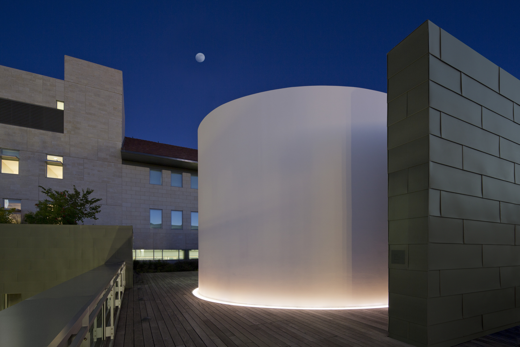약 50년 동안 전 세계적으로 80개 이상이 설치된 터렐의 대표 연작, Skyspace는 천장에 구멍 하나를 뚫어 놓고 그 너머의 하늘을 바라보게 하는 작품입니다. 그중 미국 텍사스 대학교 오스틴 캠퍼스에 설치된 'The Color Inside'(2013)가 대표작입니다. 일출, 일몰 시각에 맞춰 방 안에 앉으면, 구멍 너머에 하늘의 색이 천천히 변하는 것을 바라볼 수 있습니다. 뚫린 구멍 외에는 아무 장치도, 설명도 없는 이곳은 오로지 학생들을 위한 명상의 공간입니다. 그저 눕거나 앉아서 위를 바라볼 뿐입니다. 한 번도 제대로 본 적이 없는 하늘이 비로소 눈에 들어옵니다.