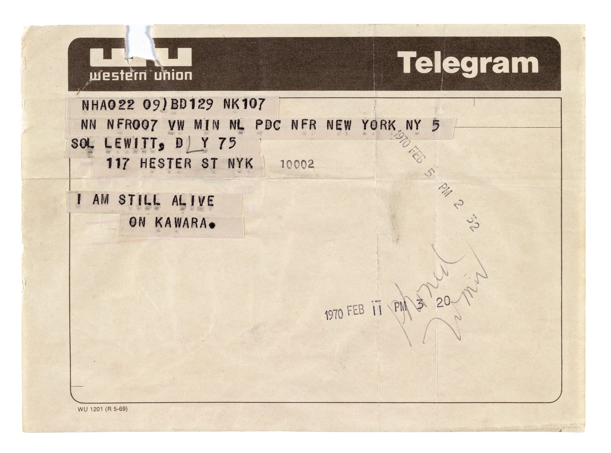Today 연작 이외에도 그는 하루를 기록하는 작업들을 꾸준하게 진행했다. 아침에 일어나면 기상 시간을 확인한 뒤 엽서 뒷면에 ‘I Got Up’이라는 메세지와 일어난 시간과 장소를 기록하여 지인에게 보내는 <I Got Up>, ‘I am alive’라는 메세지를 전보로 전달하는 작업, 자신이 하루동안 돌아다닌 장소를 지도에 표기하는<I Went> 작업, 자신이 하루동안 이야기한 사람들을 기록하는 <I Met>작업, 자신이 읽은 그날의 기사를 스크랩하여 기록하는 <I Read> 작업등 자신의 일상을 철저히 기록화했다. 그가 ‘무엇이 미술인가’라는 질문에 제시한 답은 자신의 ‘시간’이었던 것이다. 그의 일상의 기록이 작품이 되었고, 작품하기가 곧 일상이었기 때문이다.
