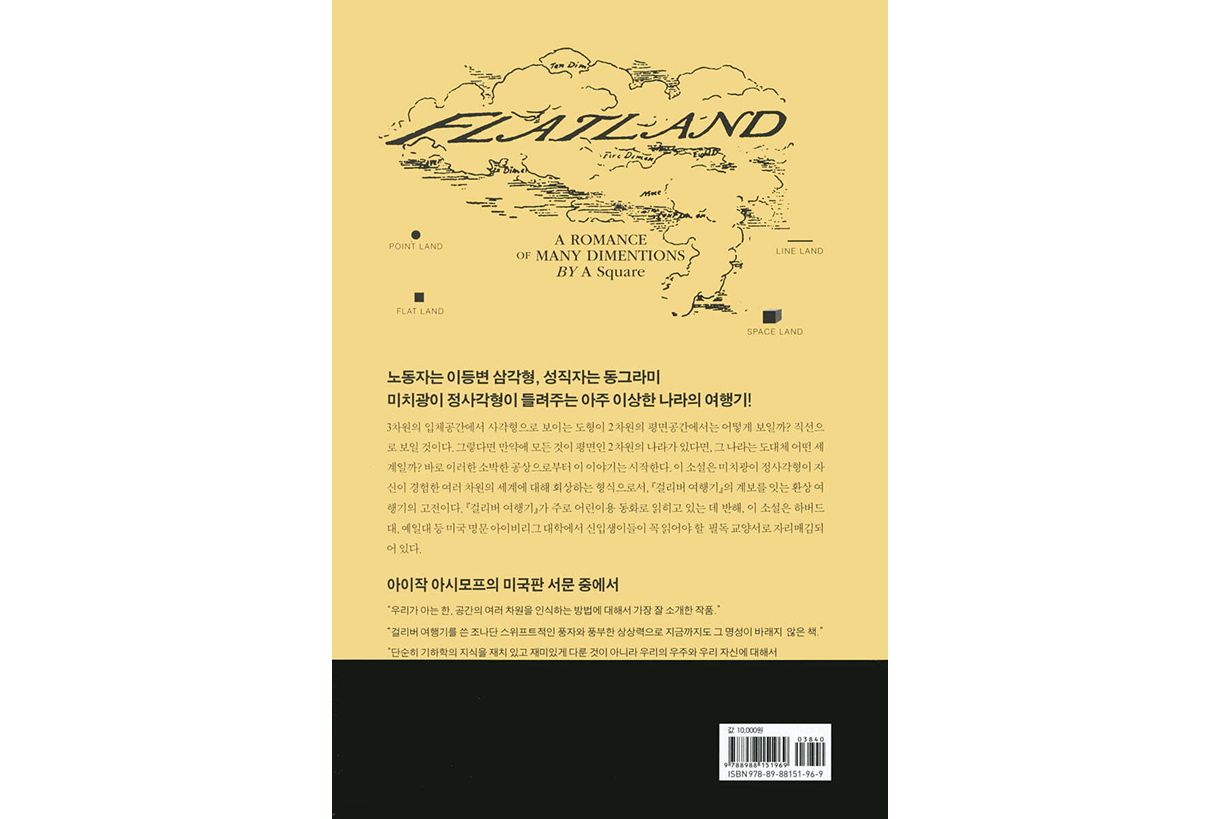 플랫랜드는 2차원의 세계입니다. 도형의 몸을 가진 존재들이 살아가고, 각의 수가 계급을 결정합니다. 이 세계의 질서는 의심받지 않습니다. 그곳에 다른 차원을 알고 있는 정사각형이 나타납니다. 애벗이 포착하는 것은 앎의 고독입니다. 세계는 때때로 진실보다 질서를 선택합니다. 2차원의 언어로는 3차원을 설명할 수 없고, 설명할 수 없는 것은 존재하지 않는 것으로 처리됩니다. 진실을 알게 되는 자는 해방됨과 동시에 기존 세계에서 추방됩니다. 홀로 마주한 진실은 자유롭기보다 고독합니다.