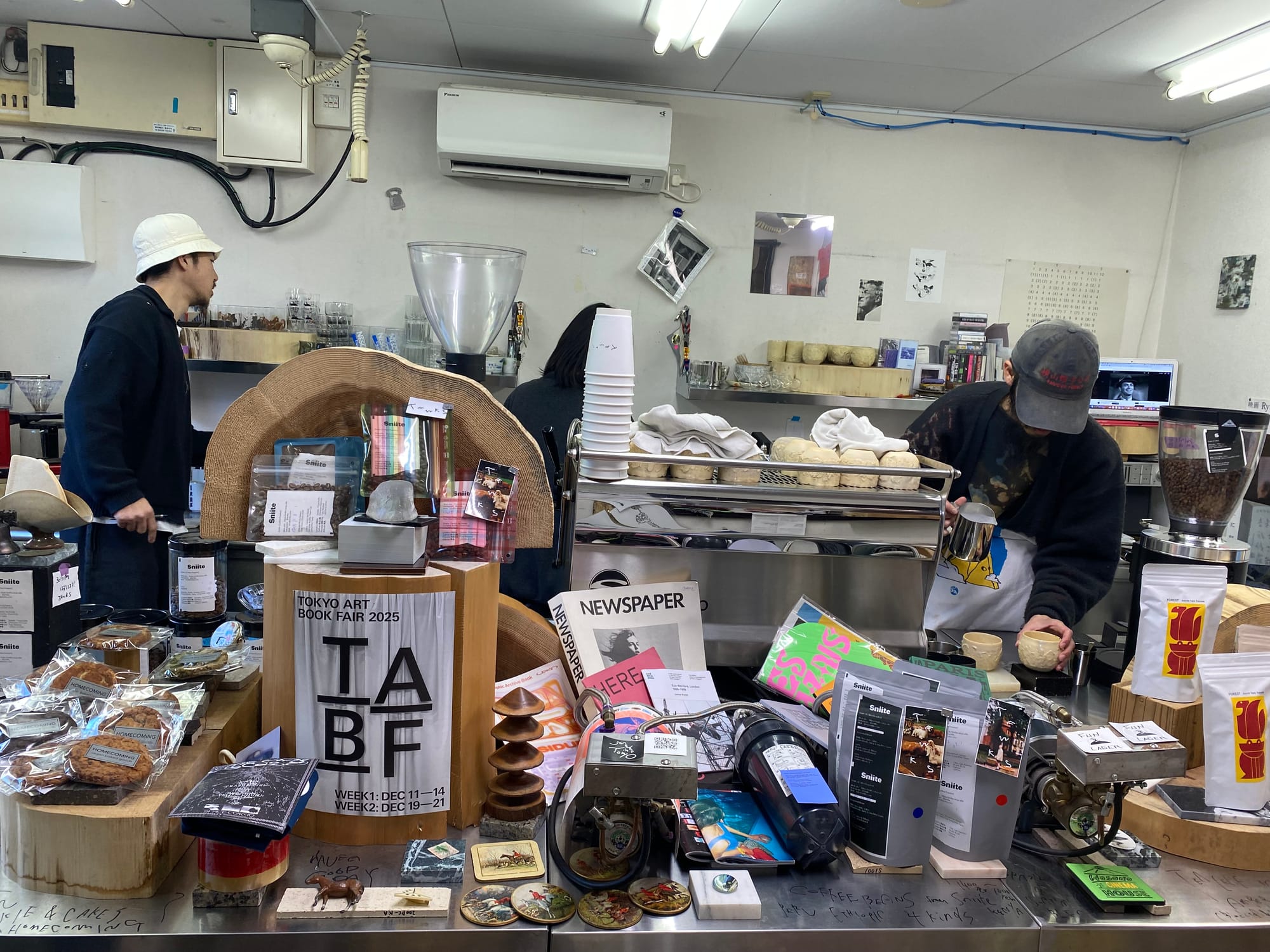 책과 음악으로 가득했던 아시바 숲에서 잠시 빠져나와 옆으로 발걸음을 옮기면, 카페 'TAWKS'로 향하는 작은 문이 나타납니다. 이 곳에서는 바리스타가 직접 내리는 싱글 오리진 커피와 함께 SKAC의 전시를 감상할 수 있습니다.