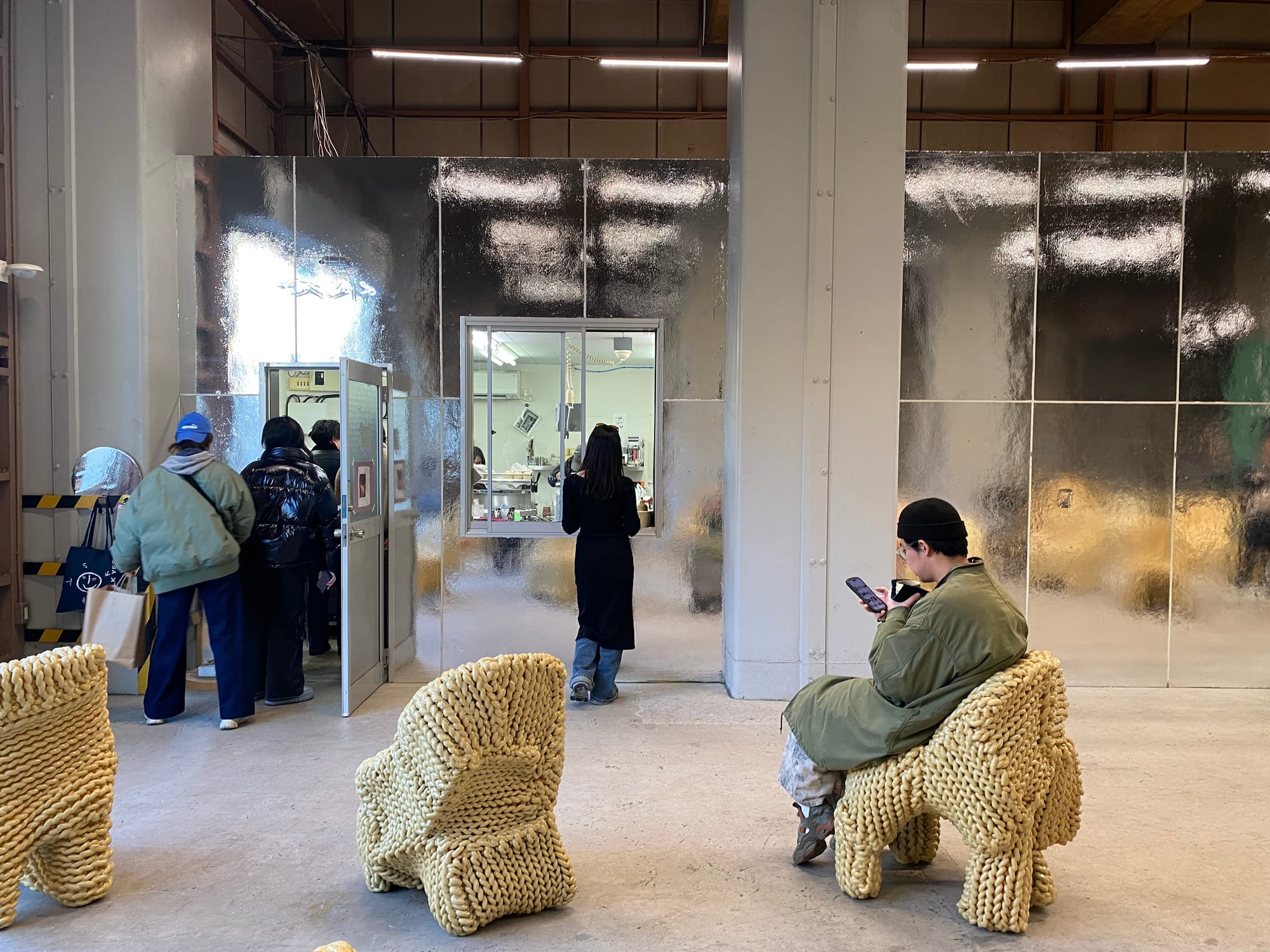 SKAC에 발을 들이며 가장 먼저 떠올린 단어는 뜻밖에도 ‘아시바 천국’이었습니다. 공사 현장에서나 볼법한 거친 철제 비계(아시바)들이 공간 전체를 가로지르며 유휴 시설 특유의 날 것 그대로의 분위기를 자아내고 있었기 때문입니다. 하지만 이 거친 골조들은 역설적으로 무엇이든 담아낼 수 있는 ‘일시적 점거’의 상징이기도 합니다. 최소한의 개입으로 최대한의 가능성을 열어둔 이들의 방식은 완성된 공간에 익숙해진 우리의 고정관념을 가볍게 무너뜨립니다.