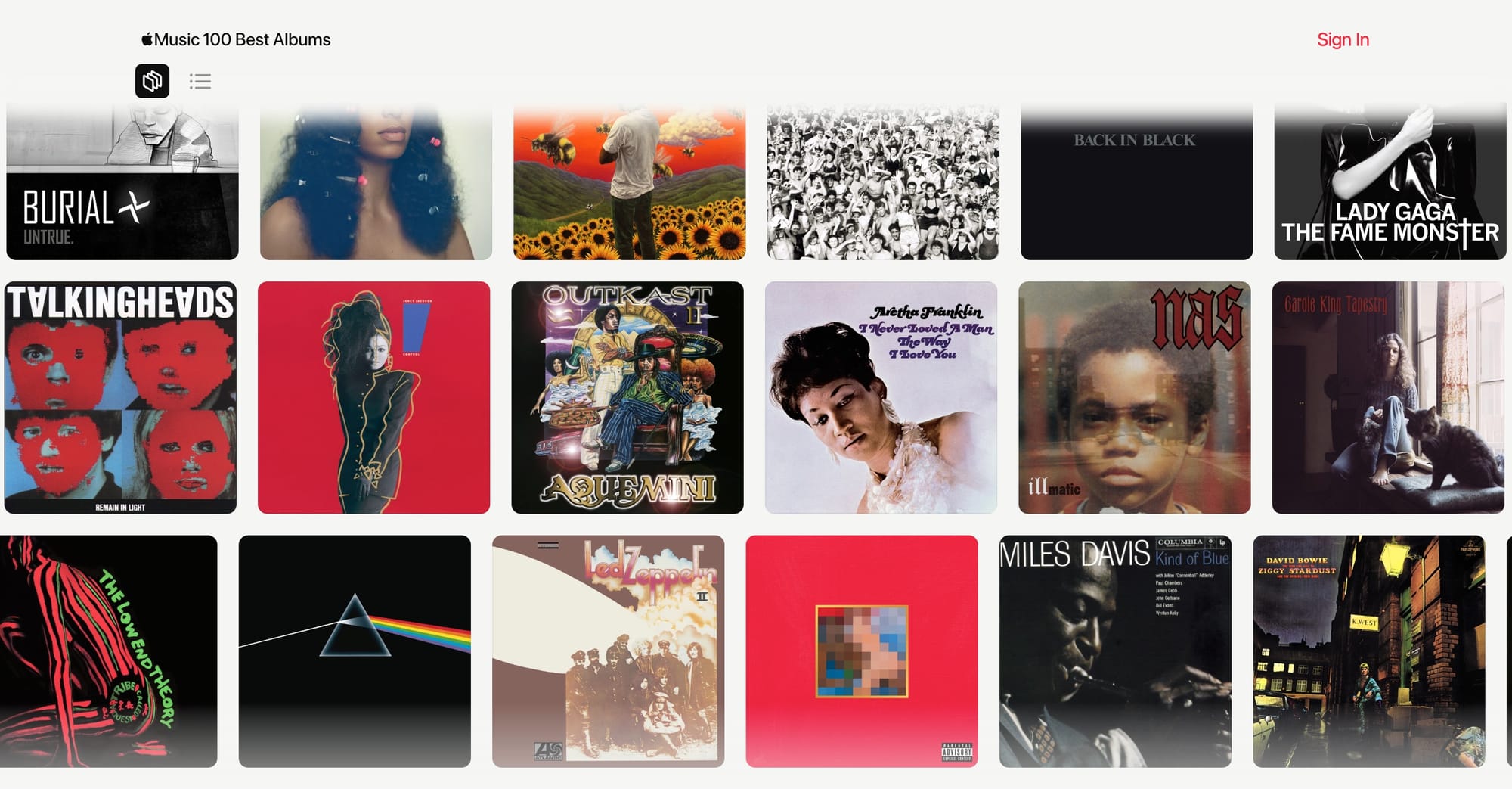 애플뮤직 | '역사상 최고의 앨범 100선' 리스트 바로가기