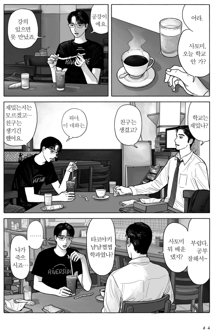 이 시리즈의 매력은 감정을 명확히 규정하지 않는 데에 있습니다. 소프트 BL로 분류되기도 하지만, 작가는 둘의 관계를 독자의 해석에 맡깁니다. 장르 구분보다 이 만화의 매력은 서로 어울리지 않을 것 같은 두 인물이 아주 작은 계기로 연결되어 예측하기 어려운 방향으로 관계를 이어간다는 점입니다. 3월에 일본에서 출간될 『패밀리 레스토랑 가자』 下 편에서 어떤 새로운 이야기가 펼쳐질지 궁금합니다.